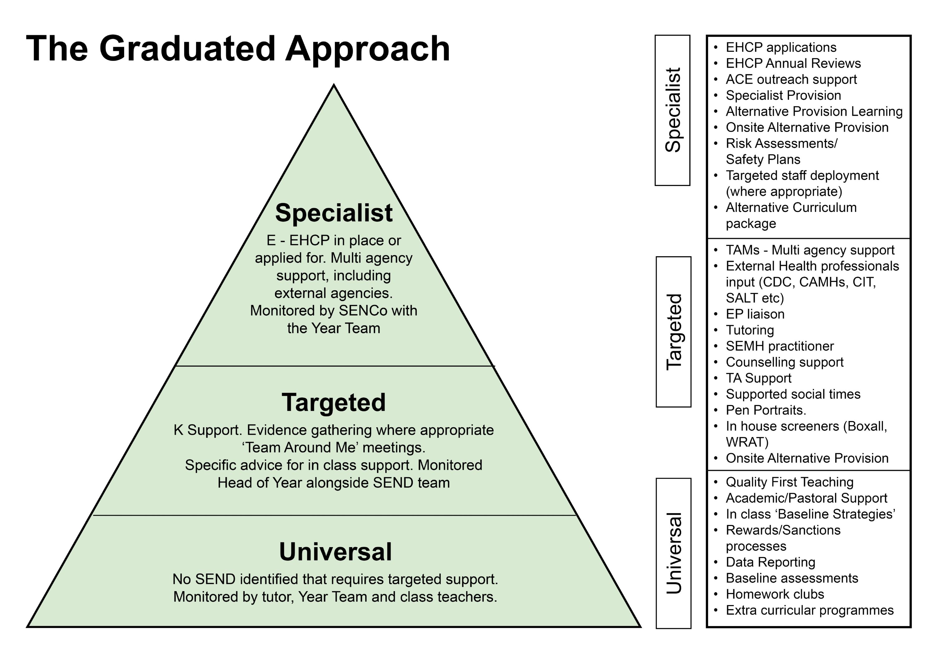 Examples of such support include academic interventions such as literacy and numeracy, or social skills group work such as anger management. Further examples can be found in the SEN information report.
